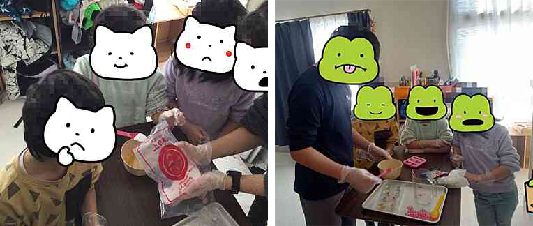☆カラフルグミづくり☆ 1月17日(金)はグミを作りました♪(´ε` ) 幼児さんと小学生が協力して スタッフの話をしっかり聞いて 順序良く、まぜまぜしてました。 完成後には 午後から来た児童と一緒に おいしくいただきました。