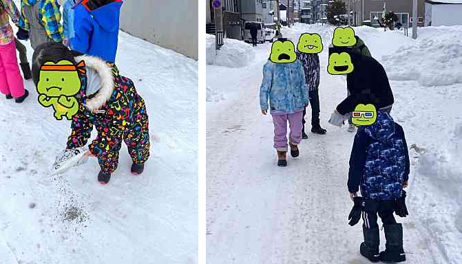1月16日(火)は地域の砂まきを行いました♪(´ε` )