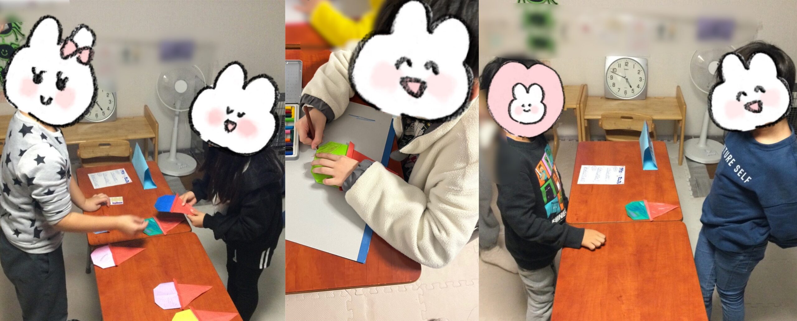 角と角を合わせてアイロンをすると綺麗に折れますよ〜!という声を聞いて、みんな丁寧に折ることができていました!
