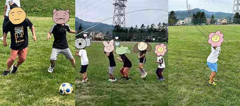 8月14日(木)は北発寒公園へ行き、サッカーと大縄跳びを行いました(*´ω`*)