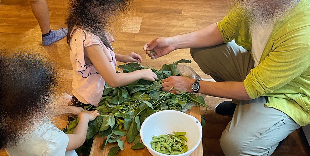 まずは、キリアンファームで取れた枝豆を差し入れ!