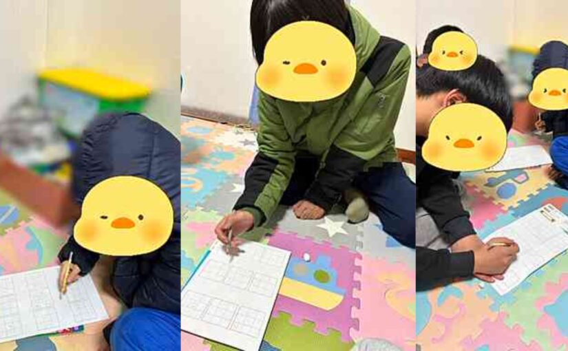 12月10日(水)は◯×ゲームの活動を行いました^ ^ 普通の◯×ゲームは慣れてくると決着がつかない!それでも◯×ゲームは思考力を育てるのに…