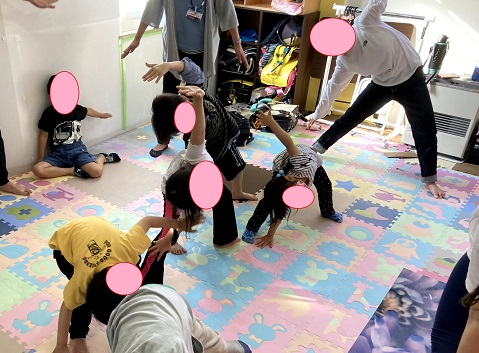 今月からヨガの講師を招いてヨガを体験しています。 幼児から中高生まで一緒に無理せずにヨガをして、楽しく活動に参加しています!